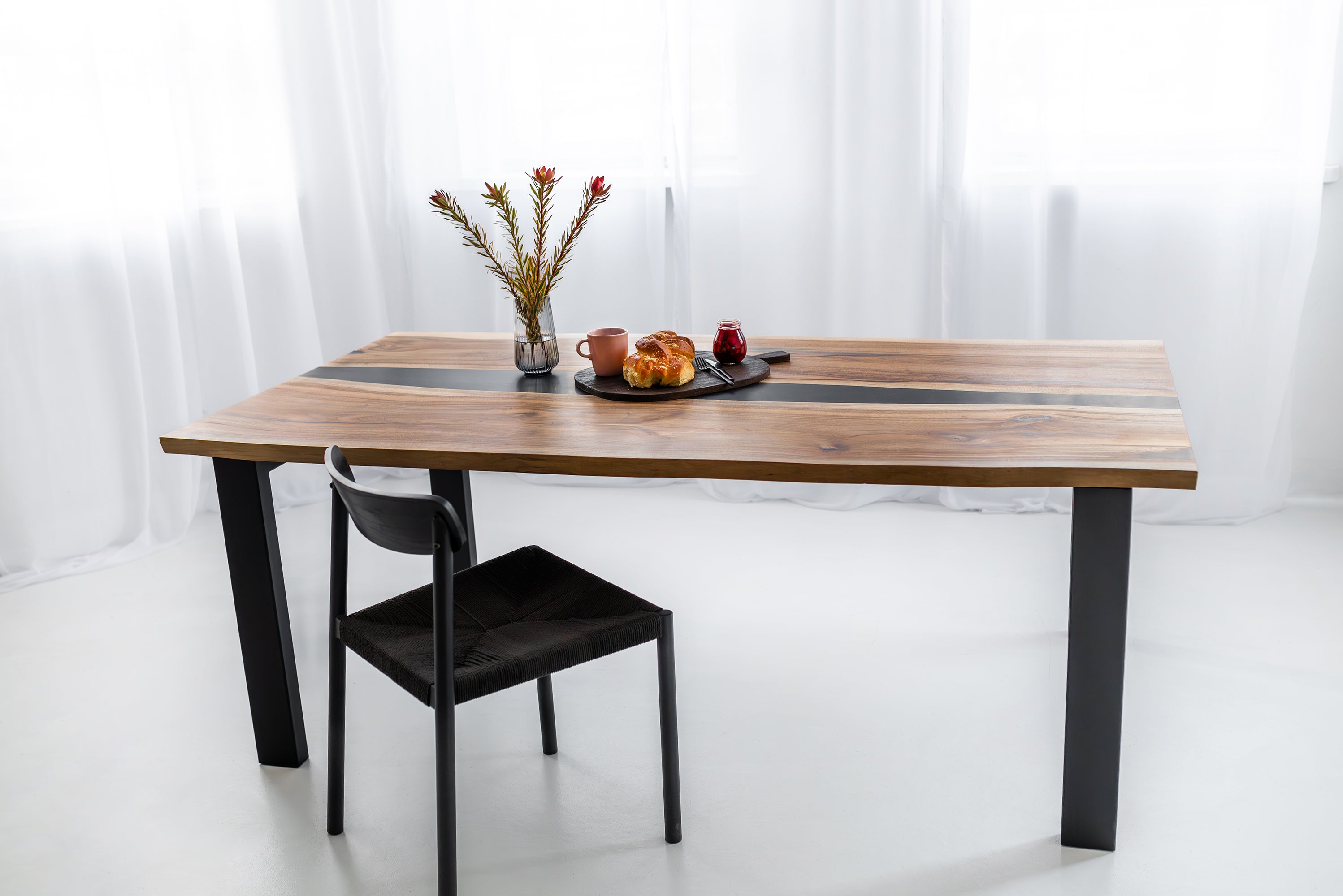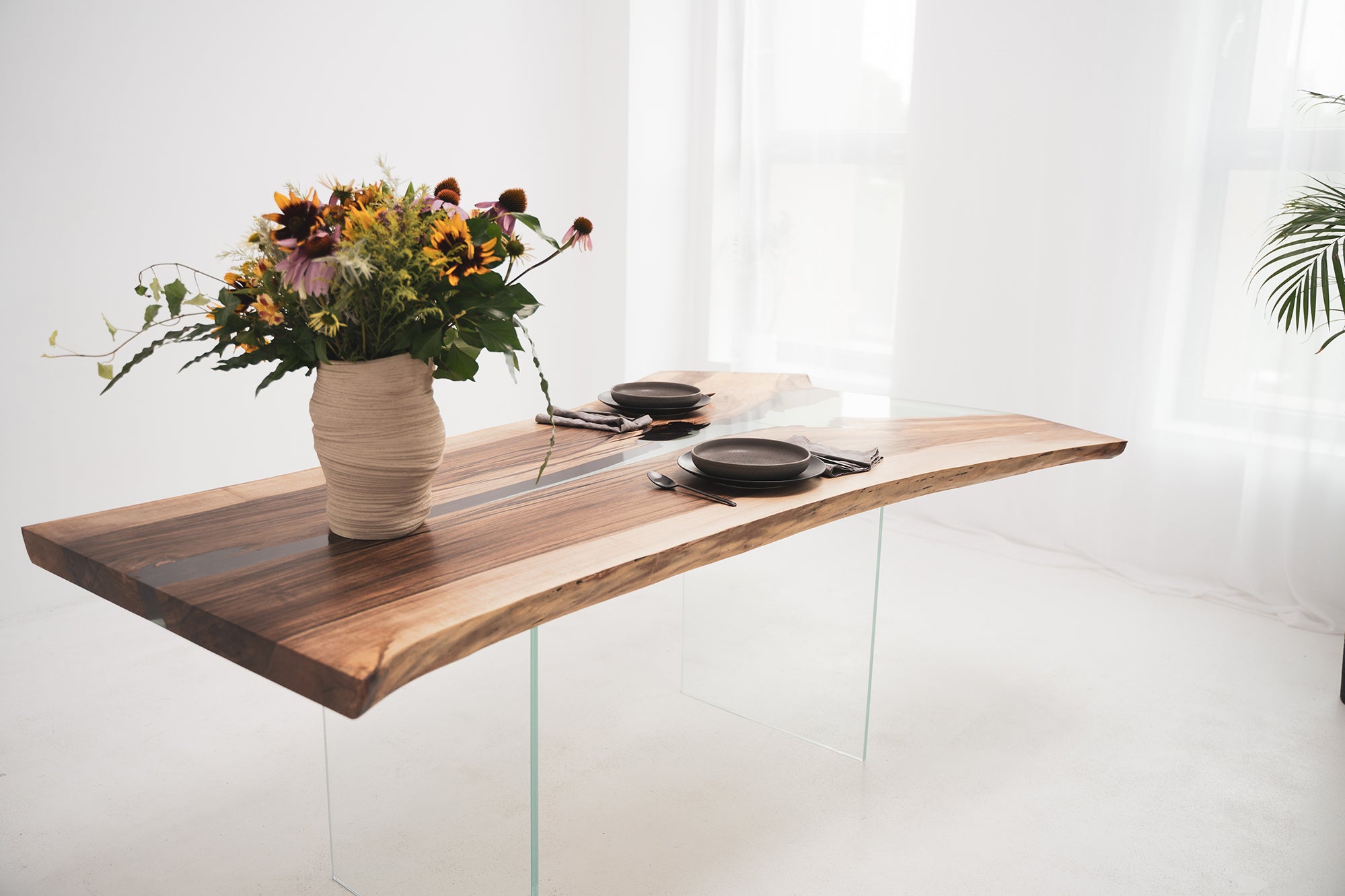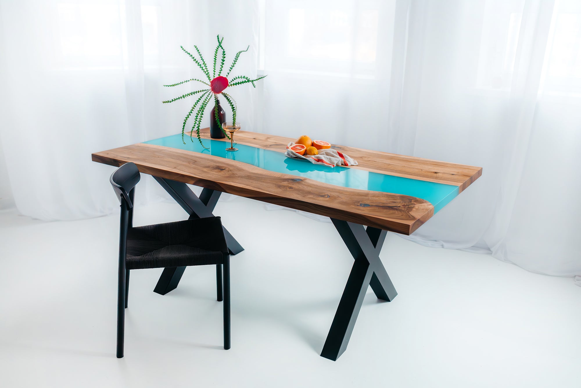 Harz ist extrem vielfältig: Farben, Farbverläufe, Halbtransparenz oder Kristallklarheit. Dank des Harzes heben wir das Beste des Holzes hervor und passen es an Ihr Interieur an. Machen Sie den Tisch zu einem Prunkstück, das auffällt und gleichzeitig perfekt in seine Umgebung einblendet.